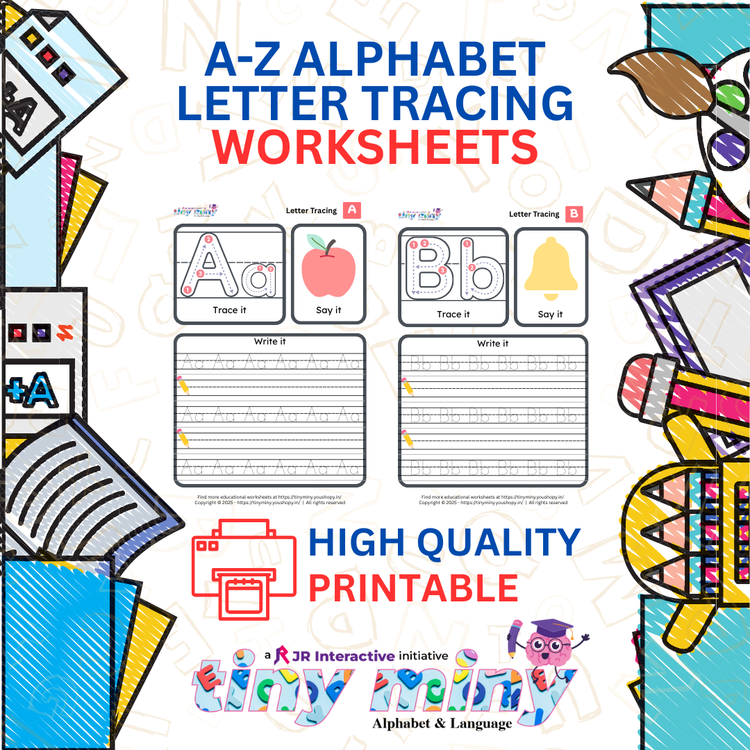 The collection includes worksheets for every letter from A to Z, ensuring that children get consistent practice across the entire alphabet.