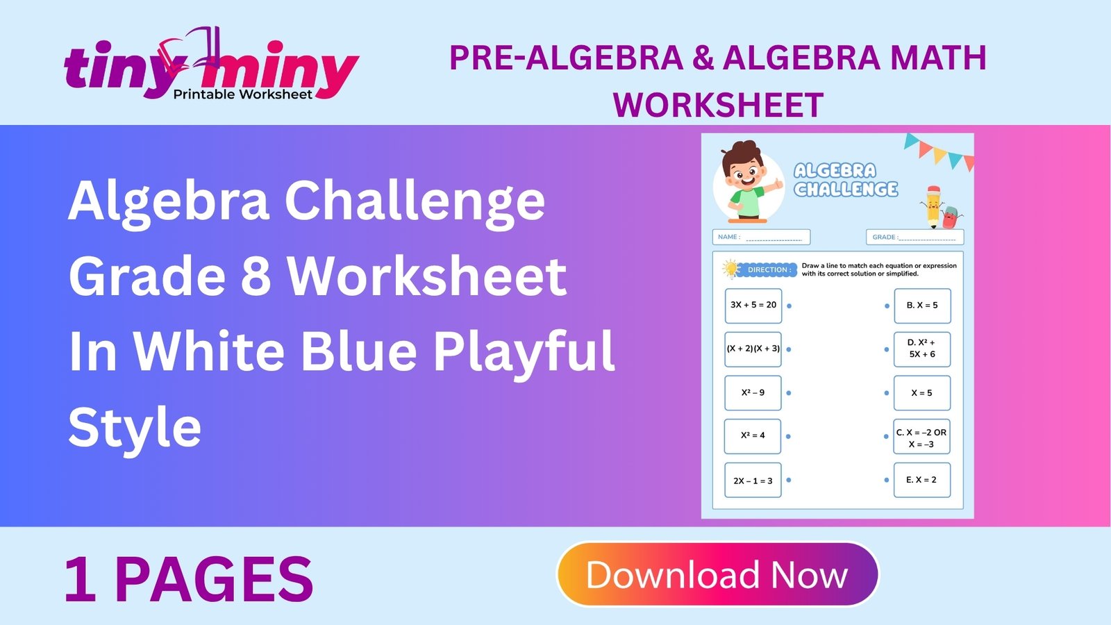 Algebra Challenge Worksheet In White Blue Playful Style