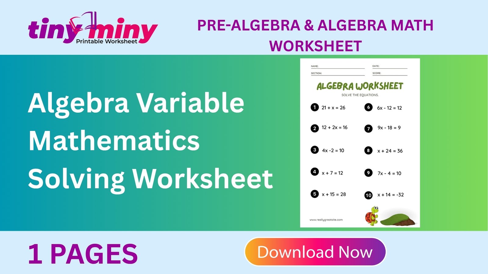 Algebra Variable Mathematics Solving Worksheet