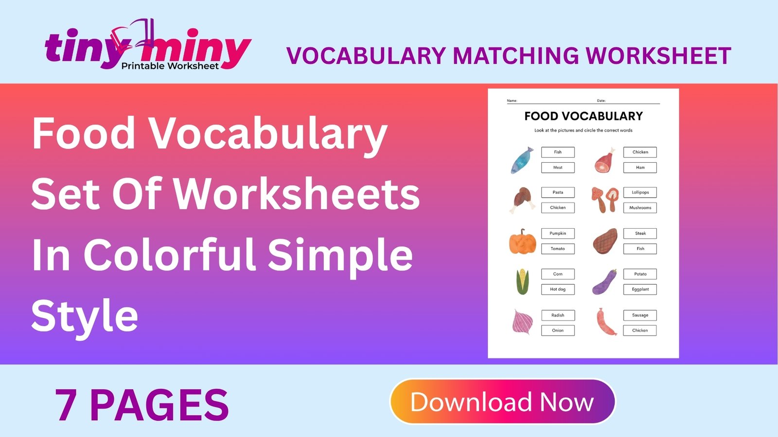 Food Vocabulary Set Of Worksheets In Colorful Simple Style