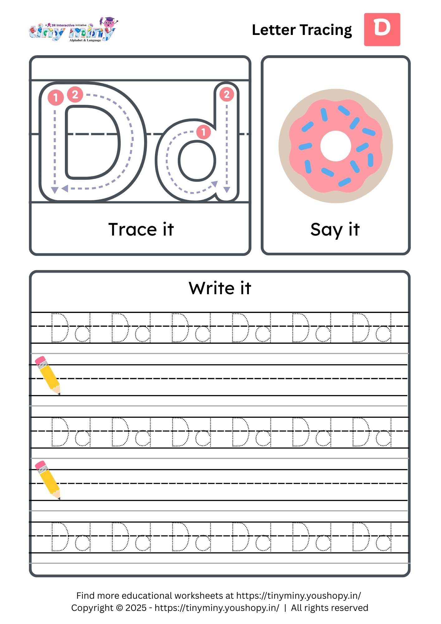 Tracing the Letter D is a valuable resource for helping young learners master the alphabet in a hands-on and engaging way. Printable, educational, and enjoyable—this activity supports every child’s path to reading and writing success.