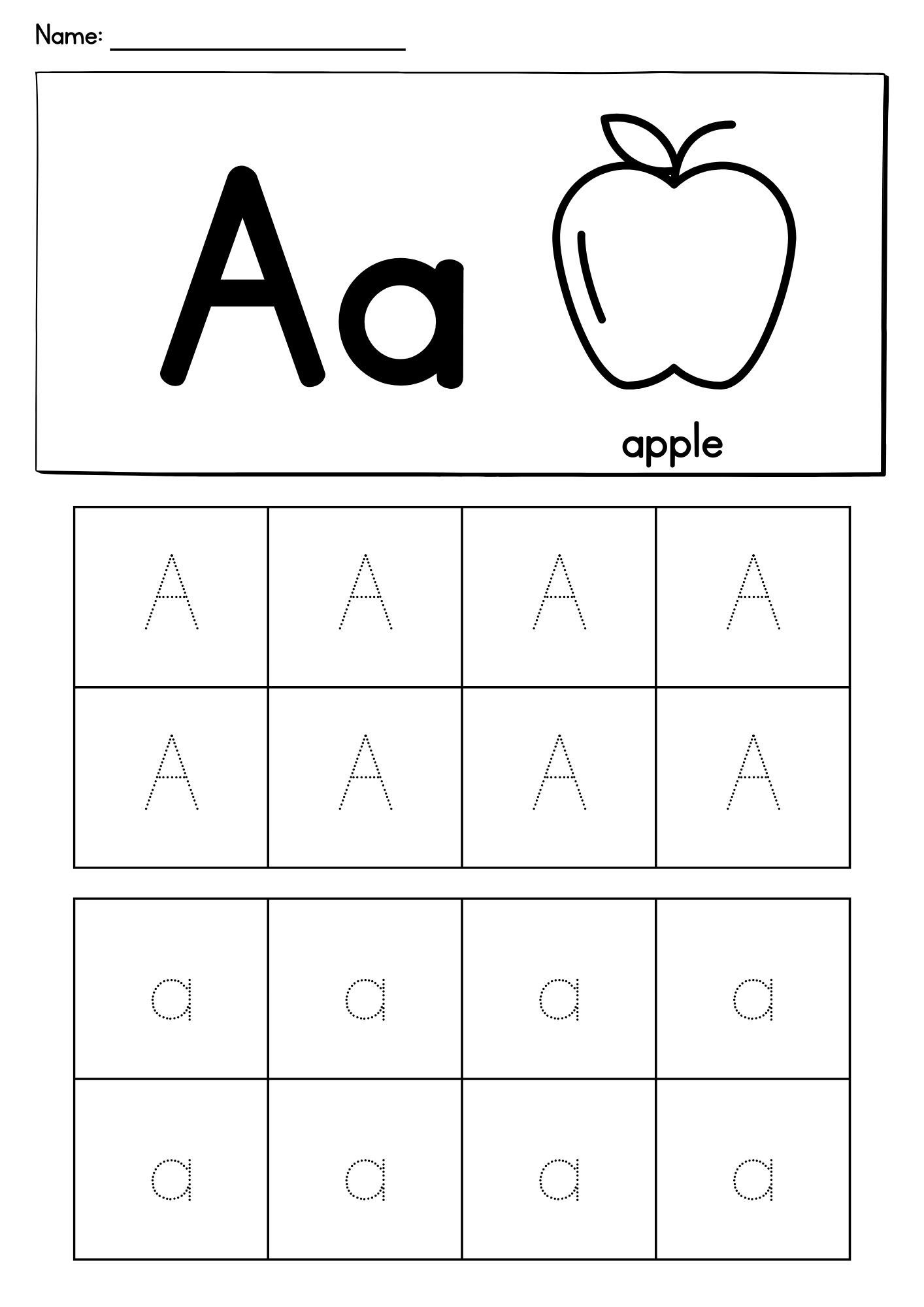 Many worksheets also include fun illustrations and simple words like apple, ant, or airplane, helping kids connect the letter to real-world objects and early vocabulary.